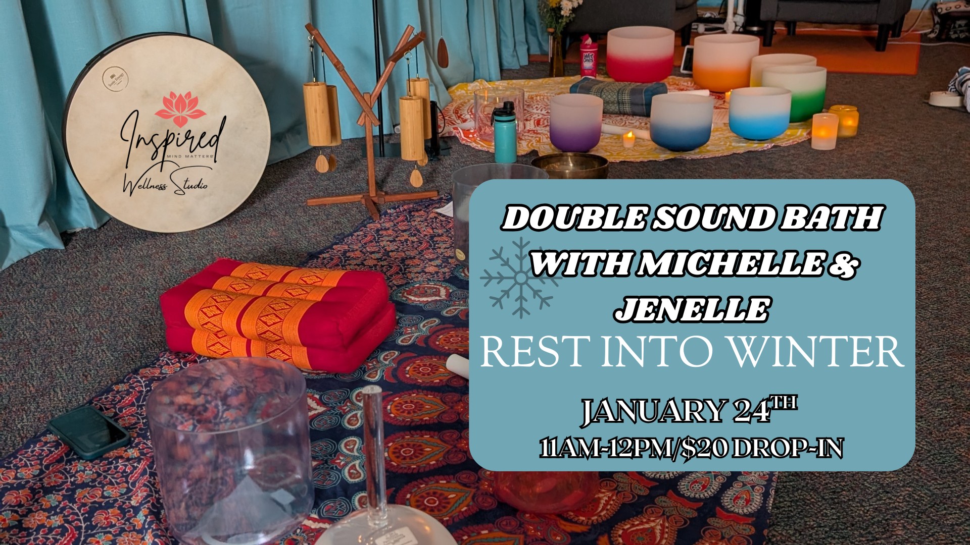 Join Michelle and Jenelle on Saturday, January 24th at 11am for a deeply restorative Double Sound Bath Session centered on the theme of resting into winter $20.