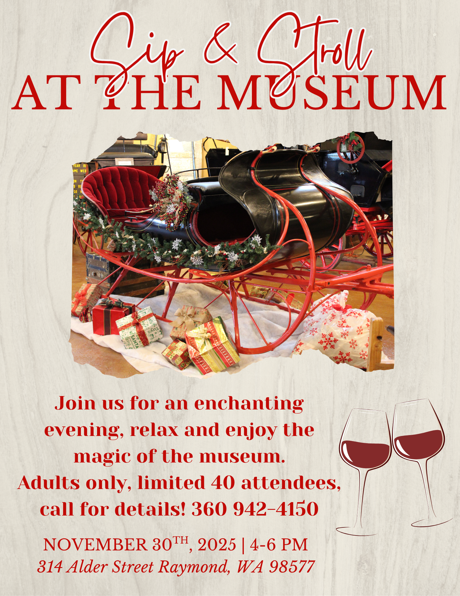 Join us for a memorable evening of yuletide spirit at the Northwest Carriage Museum!