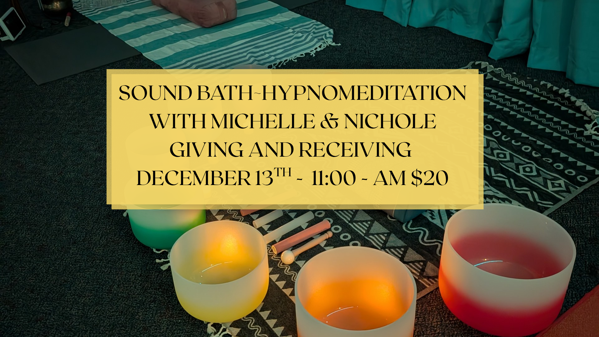 Michelle and Nichole are hosting a Hypnotherapy Sound Bath on Friday, December 13th at 11 a.m. and you’re invited to settle in, soften, and reset.